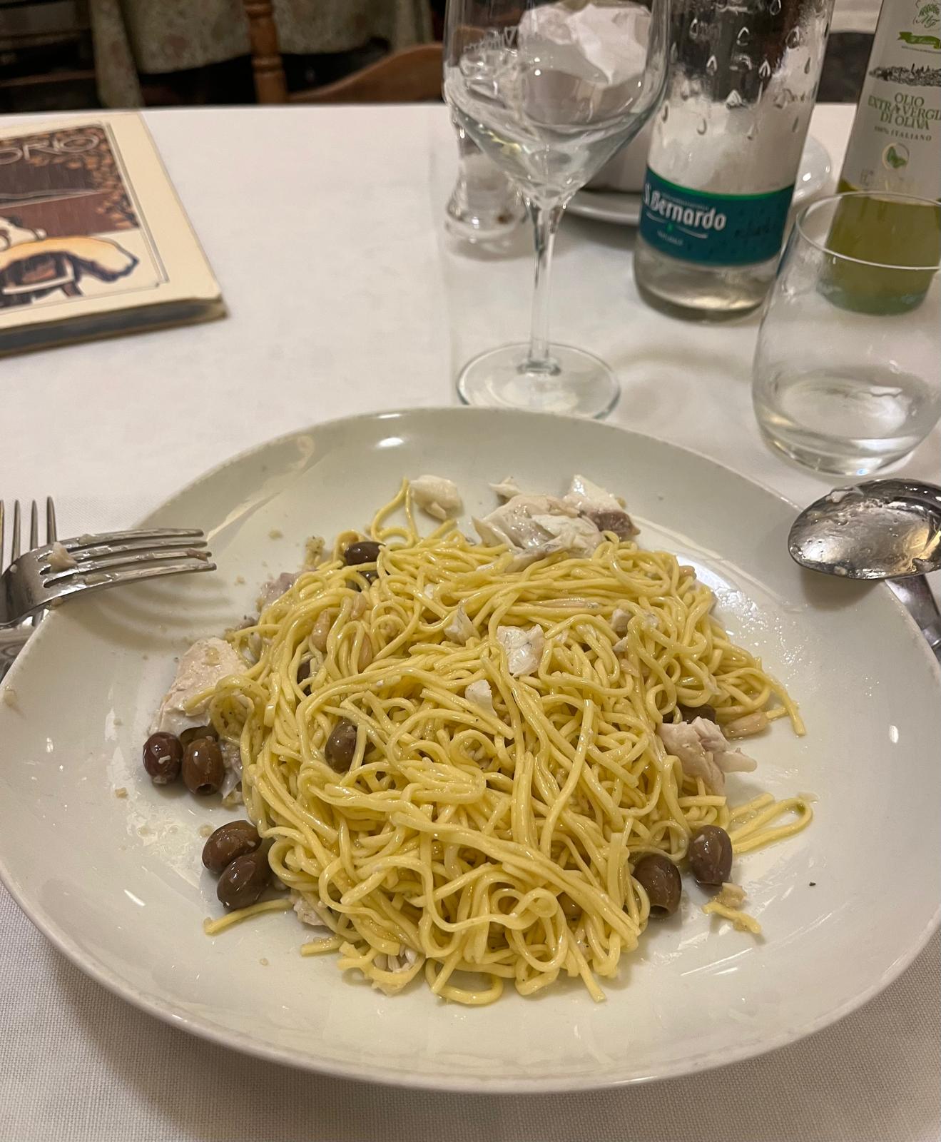 Spoiler: così è stato. Ho di nuovo mangiato da Dio, facendomi consigliare il primo (taglierini di madia con orata, battuta di pinoli, parmigiano, maggiorana e olive taggiasche), proseguendo con le alici fritte e finendo con questo latte dolce antica ricetta con vino liquoroso. Sapori nuovi ma sempre giusti, bilanciati, che sanno di saper fare e di amore. E poi continua la bellezza con le chiavi, come se fossero di casa, che vai a ritirare alla reception, la stanza elegante, un po’ vintage, il letto grande che ti aspetta per cularti dopo questa bellissima giornata colma di emozioni.