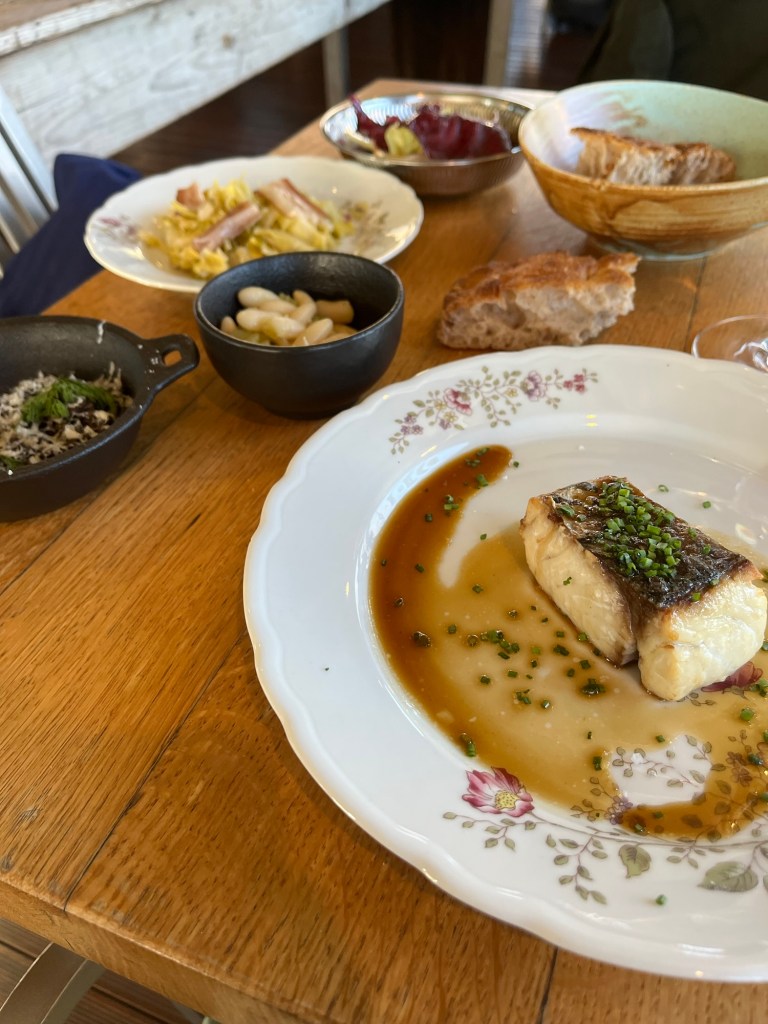 E ovviamente, c’è il durante, il clou dello spettacolo. Essere da sola mi permette di osservare tutto, a lungo, senza dovermi concentrare su una conversazione e la persona che ho di fronte a me. E’ tutto incentrato sul momento, sul cibo, l’atmosfera, il personale, la decorazione del luogo. Quando assaggio il piatto, mi focalizzo sui sapori, le sensazioni in bocca, i profumi che persistono più o meno a lungo al palato. Il vino. È un momento di contemplazione, di profonda connessione con i miei sensi. Guardo i tavoli attorno a me, le persone, il via vai dei camerieri tra i tavoli, le cucine che si intravedono. Spesso, mi sembra che il personale sia ancora più attento al mio benessere, che mi dia una maggior considerazione nel suo servirmi e farmi suggerimenti. Contrariamente a quello che si potrebbe pensare, il tempo vola pure in quei momenti. Mangio sicuramente più lentamente ancora per amplificare l’esperienza ma lo faccio involontariamente, perché è il mio ritmo quando mi trovo bene in un posto. Voglio prendere il tempo e non perdermi nulla. Per me sono momenti importanti, fuori tempo, che mi regalano emozioni di un’estrema sensualità. Mi fa rilassare, capire meglio una cucina, l’intento che c’è dietro, mi carica di ispirazione per ricette da riprodurre a casa, mi fa pensare a particolari che hanno la loro importanza, alla complessità dei mestieri della ristorazione.